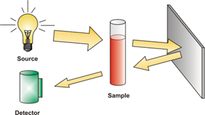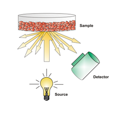 Amikor a fény szilárd felületekről vagy porokban, pelletekben vagy granulátumokban verődik vissza, azt diffúz visszaverődésnek nevezzük. Egy integráló gömbben a fényt széles, közel párhuzamos sugárban irányítják a mintára. A szórt fényt jól eloszlatja a gömbben az aranyozott belső felület többszörös diffúz visszaverődése, „homogenizálva” a fényt. Ezért az integráló gömb kiválóan alkalmas inhomogén mintákhoz, valamint finom porokhoz. A mintától függően a fény jelentős távolságra hatolhat túl a felületen, pl. poroknál kb. 2-4 mm a részecskemérettől, a hullámhossztól és a sűrűségtől függően, így lehetővé válik a mintán belüli komponensek számszerűsítése.